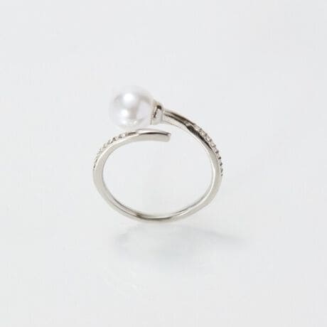 【一粒パールとラインビジューが描く、サージカルステンレス素材のリング】