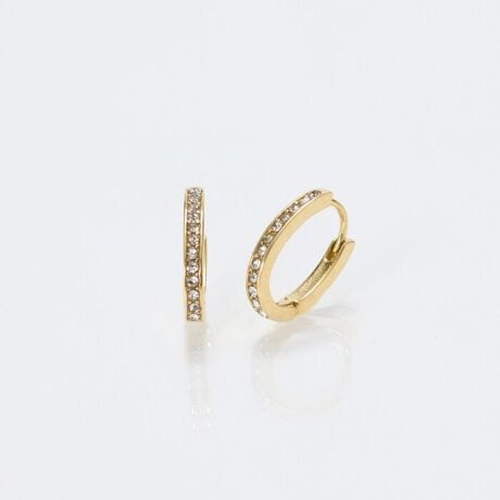 【金属アレルギー対応】ワンタッチライナーオーバルビジューフープピアス ゴールド