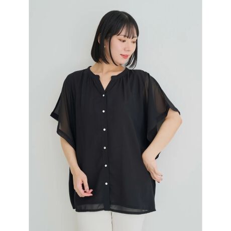 身頃部分に軽やかなシフォンを重ねた爽やかな印象のスキッパーブラウス。