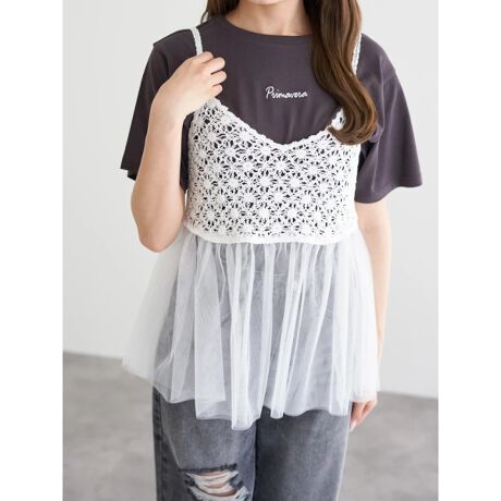 かぎ針編みとチュールフリルをドッキングしたシーズンライクなキャミソール