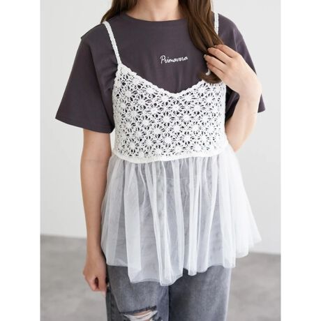 かぎ針編みとチュールフリルをドッキングしたシーズンライクなキャミソール