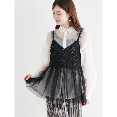 かぎ針編みとチュールフリルをドッキングしたシーズンライクなキャミソール