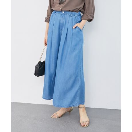 リラックス感のあるワイドシルエットながらも、ウエストの2タックデザインで腰回りもスッキリと見え、上品な印象になっています。