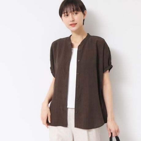ブラウスとしてパンツやスカート合わせの着こなしはもちろん、羽織りとしても活躍するアイテム。