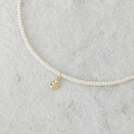 遊び心あふれるビーズとメタルパーツの組み合わせが、首元を華やかに演出してくれます。