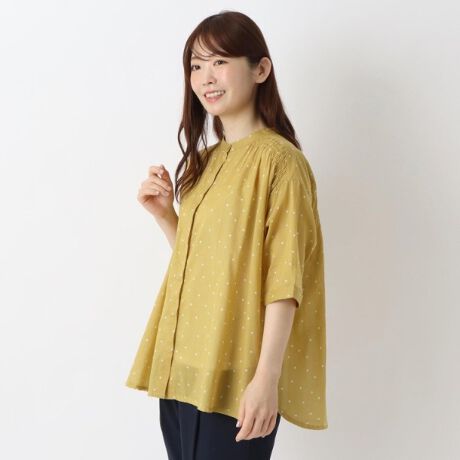 軽く柔らかなコットンボイル生地を使用した比翼開きブラウス。