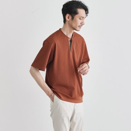 キーネックデザインが上品な大人のカットソーを演出してくれます。