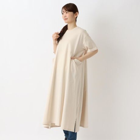 ややゆとりのあるシルエットに、ウ工スト切替を利用したポケットがポイントのワンピースです。