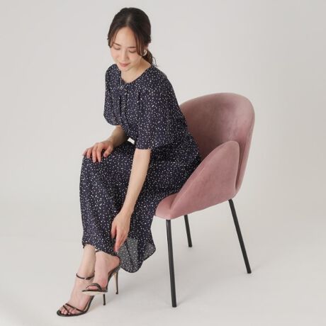 身頃は程よくスッキリと仕上げていますので、カーディガンやジャケットにも合わせやすいワンピースです。