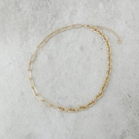 2種類のチェーンを繋ぎ合わせた重厚感のあるネックレス