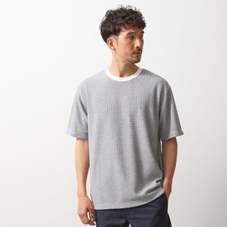ワッフルのような表面変化が特徴のジャガード素材のクルーネックTシャツ。