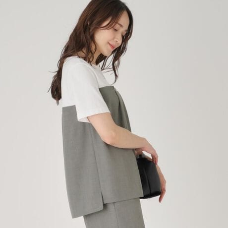 ビスチェレイヤード風の異素材ドッキングプルオーバーです。