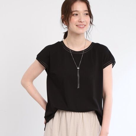 テープがアクセントになっているので一枚でもシンプルなスタイリングに活躍してくれますが、ワンポイントになる大人っぽいインナー使いにもおすすめです◎。