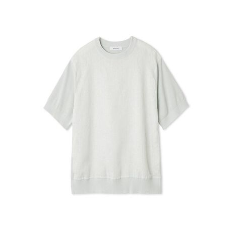 ニット地とリネンの布帛生地を組み合わせた異素材ドッキング Tシャツ。