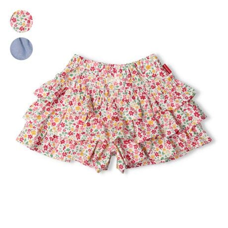 小花柄・無地ダンガリーフリルショートパンツ