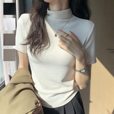 フレンチスリーブとハイネックが上品な半袖トップス。<br>