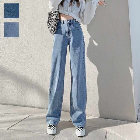 秋冬スタイルアップのワイドデニムパンツ
