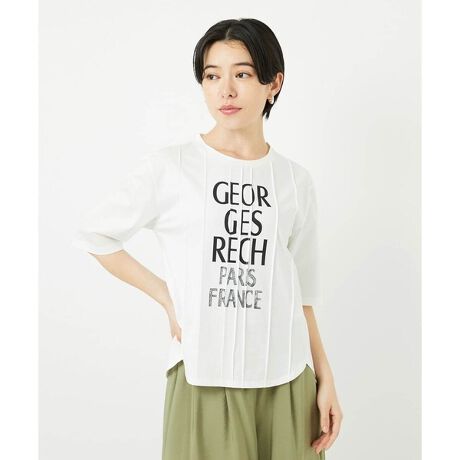 ジョルジュ・レッシュのロゴをプリントしてからピンタックを入れ、わざとロゴを崩した変化球のロゴプリントカットソーです。存在感のあるロゴながらピンタックで崩しているのでアートっぽくコーデに馴染みやすいデザインとなっています。少し落ち袖のゆとりあるシルエットで着心地の良い一枚です。