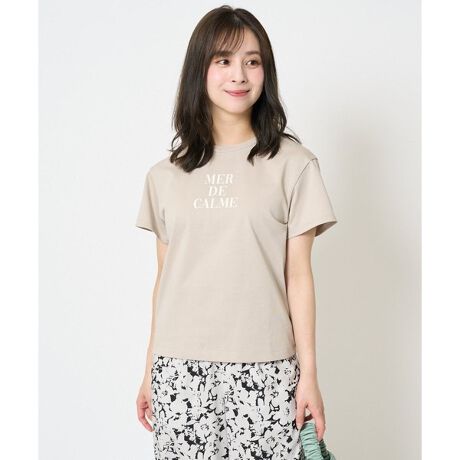 短めの袖丈とコンパクトなサイズ感できれいめな、ドロップショルダーのTシャツ。大きすぎないロゴデザインがカジュアルすぎず大人もちょうどよく着映えます。