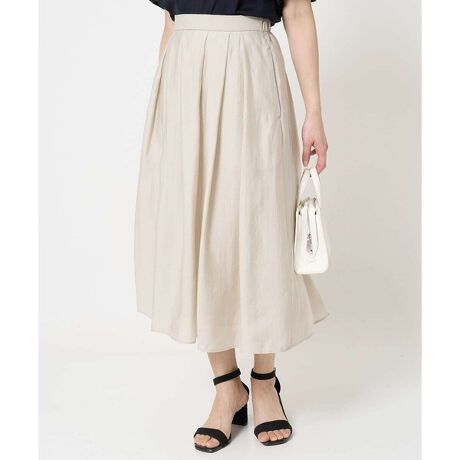 素材の軽さと程よいフレア感が大人の印象で着こなせるスカート。ウエストにはタックを入れているので、気になるお腹周りもカバーしてくれます。裾に透け感があるので、動くたびに軽やかな雰囲気を演出してくれます。