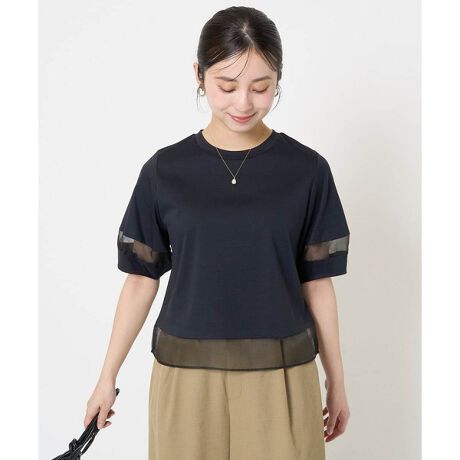 程良い遊び心のあるデザインは、いつものボトムを一気に旬顔にアップデートしてくれます。裾にシアーな切替えがあるので、ボトムにはインせずにアウトで着こなすのがおすすめ。デザイン性はもちろん、軽やかで涼しげに着こなせるのも嬉しい。