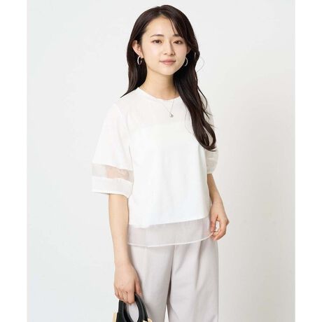 程良い遊び心のあるデザインは、いつものボトムを一気に旬顔にアップデートしてくれます。裾にシアーな切替えがあるので、ボトムにはインせずにアウトで着こなすのがおすすめ。デザイン性はもちろん、軽やかで涼しげに着こなせるのも嬉しい。