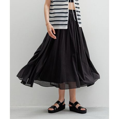 分量をたっぷりとったギャザースカートで、軽さとドレープ感といった素材の特性が最大限に活かされたアイテムとなっています。シルクコットンの落ち感と軽さが華やかな印象を与えます。