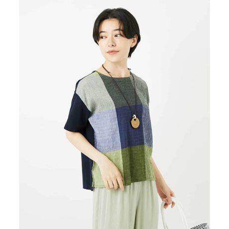 マルイウェブチャネル   /   トップス   /   Tシャツ・カットソー   /   [日本製]コットンレーヨンランダムチェックブラウスカットソー