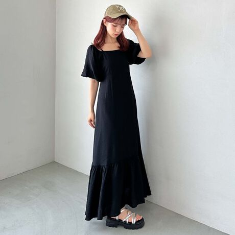 ふんわりとした袖とストンと落ちたシルエットで女性らしいバランスに。