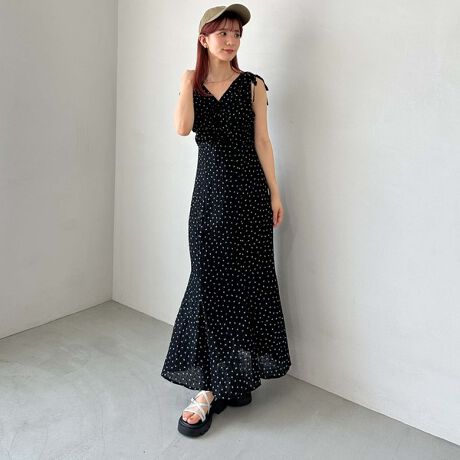 肩部分は絞れる形なので腕を出すのが苦手な方でも着やすいデザイン。