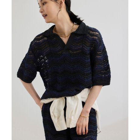 ざっくりと手編みのような風合いに仕上げたローゲージニットポロ。ボタンレスのスキッパーデザイン。