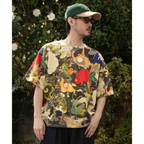 [型番:7CC-5207-2025]着る、NIPPON ART 繊細なタッチと大胆な構図が目を惹くTシャツ。「生き物」「妖怪」「神仏」をモチーフに、日本の様々な浮世絵をコラージュデザインしたカヤならではのオリジナル柄。肌触りの良い綿100%と厚みのある生地感です。