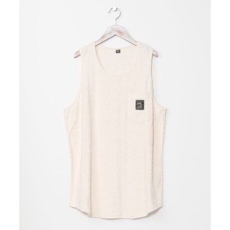 [型番:4CH-5209-2025]涼しげなオリジナル柄のパイル生地を使用したメンズタンクトップ。リラックス感のある雰囲気。パンツとのセットアップ着用もおすすめ。