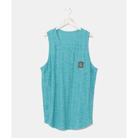 [型番:4CH-5209-2025]涼しげなオリジナル柄のパイル生地を使用したメンズタンクトップ。リラックス感のある雰囲気。パンツとのセットアップ着用もおすすめ。
