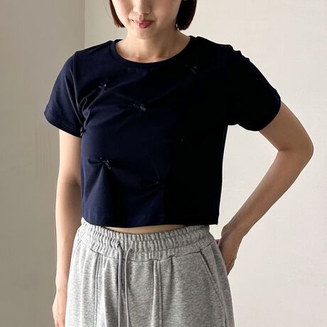 チラッとお腹が見えるようなコンパクトな丈。