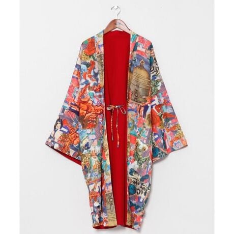 [型番:7CQ-5207-2025]さまざまな浮世絵を大胆にコラージュしたカヤならではのオリジナル柄のリバーシブル羽織。生き物や妖怪、日本の神仏などを組み合わせた迫力あるデザインが目を引きます。裏表で異なる表情を楽しめ、その日の気分で着こなしを変えられるのも魅力。新柄の地獄柄も加わり、和の世界観を存分に楽しめる一着です。リバーシブル着用可能。