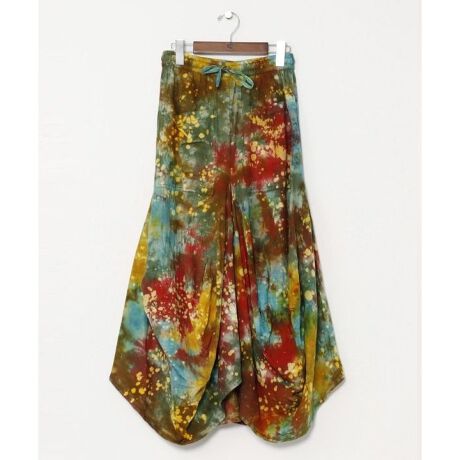 [型番:NSO-5104-2025]ネパールコットンにタイダイ染めをした変形スカート。ポケットもついており機能性も抜群。ウエストには紐があり調節も可能。印象的なデザインが目を惹く一枚。