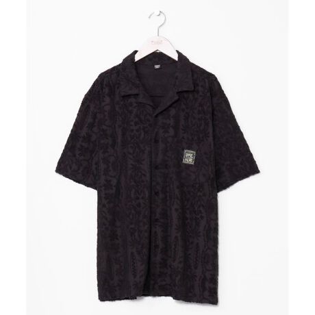[型番:4CH-5207-2025]涼しげなオリジナル柄のパイル生地を使用したメンズアロハシャツ。リラックス感のある雰囲気。パンツとのセットアップ着用もおすすめ。羽織りとしても活躍します。