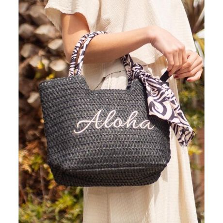 ハワイアン柄のスカーフが特徴的なペーパー素材のミニトートバッグ。エレガントなデザインのAlohaの刺繍もポイント。マチ付きで小物などを収納しやすく、使いやすいサイズ感です。軽くて持ちやすいのも◎。内ポケット付き