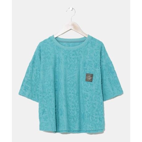 [型番:4CH-5203-2025]涼しげなオリジナル柄のパイル生地を使用したショート丈のTシャツ。リラックス感のある雰囲気。パンツとのセットアップ着用もおすすめ。