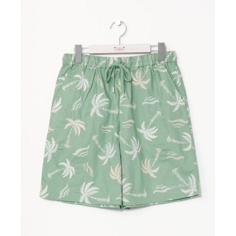 [型番:4CH-5202-2025]総柄刺しゅうのヤシ柄のメンズハーフパンツ。存在感があり、ナチュラルなカラーリング。ハワイ感が満載でシャツとのセットアップ着用もおすすめ。
