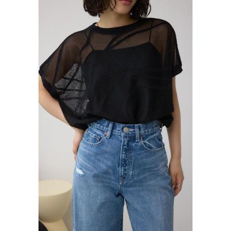 ■スカシガラドルマンニット■ポイントレース風のフェミニンさとゆったりシルエットのカジュアル感がポイントです。人気のライン柄ジャガードは甘くなりすぎず、大人のレース柄風に仕上げています。■ディティール12ゲージのライン柄メッシュダブルジャガードで軽く仕上げています。ルーズシルエットなので中に合わせるアイテムによりドルマンプルオーバーとしてもルーズシルエットベストしても着用可能です。コーディネートの幅が広く、下に重ねるアイテムにより、初夏□初秋まで長い期間着用可能です。■スタイリング裾リブを長くとっているので、着用時の丈アレンジがしやすくなっています。ベーシックなデニムをはじめ、きれいめなフレアパンツやスラックスパンツなど 、ワイドシルエットから細身のシルエットまで様々なテイストのボトムスとの相性も抜群です。■生地強撚綿糸で清涼感があリます。極細90番のポリエステル糸をプレーティングしてトレンドのシアー感と編柄の安定感を出しています。透け感:あり裏 地:なし伸縮性:あり光沢感:あり[注意事項]※画像の商品はサンプルです。実際の商品と仕様、加工が若干異なる場合があります。※画像の商品は光の照射や角度、お使いのモニター環境により、実物と色味が異なる場合がございます。※着用、お取り扱いの際は、アテンションタグをご確認ください。