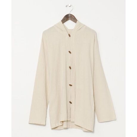 [型番:NSO-5102-2025]ネパールコットン生地のメンズフード付きカーディガン。肌触りもよく、着るごとに馴染んでいくベーシックな一枚。ウッドボタンがポイントの素材感溢れるアイテム。