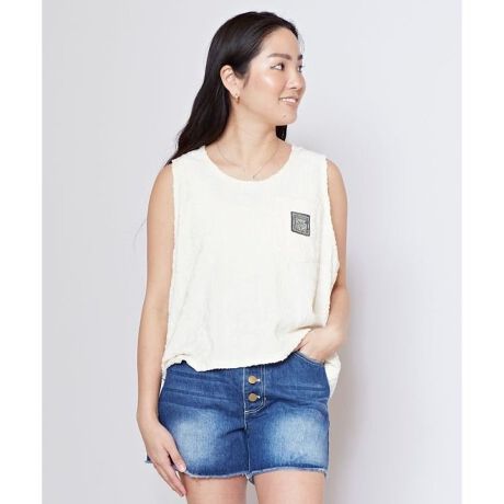[型番:4CH-5204-2025]涼しげなオリジナル柄のパイル生地を使用したタンクトップ。リラックス感のある雰囲気。パンツとのセットアップ着用もおすすめ。