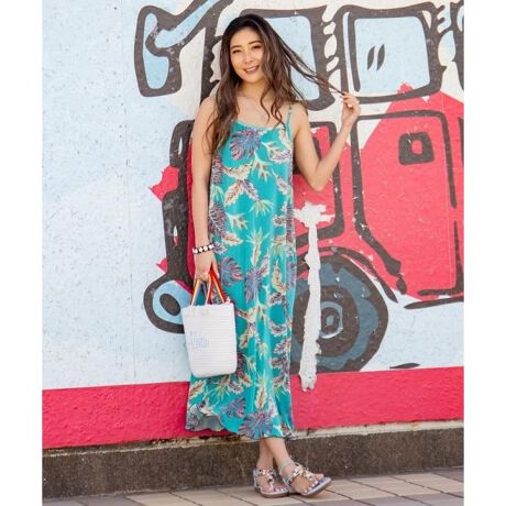 [型番:42B-5204-2025]プリーツカットソーのワンピース。肩紐で着丈調整可能。パンツとのセットアップ着用もおすすめ。しわになりにくい素材です。