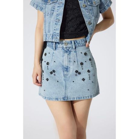 【フラワーデザインをビジュー&ビーズで描き、リュクスな刺繍が華やかなAラインデニムスカート】■ポイント裾にかけてのグラデーションにようにビジューを散りばめたが華やかさを演出するビジュースカート。様々な、ビーズとビジューを巧みに組み合わせた刺繍が、繊細でリュクスな雰囲気を引き立てます。裾に向かって少なくなるビジュー刺繍デザインで華やかでありながらも儚さを演出。後ろスカートはビジューやビーズをあえて付けず、座り心地も考慮しています。■ディテールライトブルーにはブラック系のビジューでデザインすることで、甘くなりすぎず、ブラックのアイテムも合わせやすくしました。ブルーにはクリアビジューでデザインしているので、今年らしいボヘミアンなスタイリングにするのもオススメです。自然なAラインシルエットは足のラインを華奢に見せてくれます。■スタイリングシンプルなトップスと合わせても華やかに演出し、Tシャツと合わせてカジュアルにスタイリングしてもOK。長すぎない丈感なので、レースタイツで合わせても今年らしいです。同じ生地、同じビジューデザインで【110IS710-1611:MIXフラワービジューショートJK】とセットアップで着用するのもお勧めです。■生地柔らかな肌触りと軽やかな着心地を叶える11ozデニム生地を使用。快適な穿き心地と上質な風合いを兼ね備えた一着です。薄手の素材感で、暑さが続く5月にも快適に着用いただけます。BLU:リアルなUSED加工を施し、ヴィンテージ感のある風合いに仕上げました。ハードな印象になりすぎず、洗練されたクリーンな雰囲気を演出します。L/BLU:ケミカルウォッシュによるハードな加工を施し、カジュアルな表情を際立たせました。さらに、一つひとつ手作業でビジューをあしらい、高級感のある仕上がりに。デニムの持つ風合いと繊細なディテールが融合し、スタイリングを格上げするアイテムです。透け感:なし裏 地:なし伸縮性:なし光沢感:なし厚 さ:中肉■商品のお気に入り登録お気に入りアイテムの再入荷・在庫1点などの通知を受け取ることができます。[注意事項]※画像の商品はサンプルです。実際の商品と仕様、加工が若干異なる場合があります。※画像の商品は光の照射や角度、お使いのモニター環境により、実物と色味が異なる場合がございます。※着用、お取り扱い