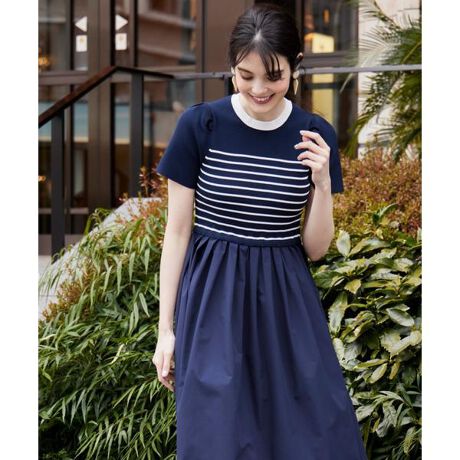 ■デザインボディには清涼感のあるさらっとしたニット、スカート部分にはハリのあるシャツ生地を使用した異素材ドッキングワンピース。肩幅を内側に寄せた華奢見えのパフスリーブと、ふんわりとした袖のボリューム感が今っぽさを演出します。ハイウエストの切り替えとギャザーたっぷりのスカートが、体のラインをさりげなくカバーしつつ、スタイルアップ効果も◎一枚でパッと華やかさがありながら、大人っぽくモードな印象に仕上がるワンピースは、イベントやお出かけが増えるこれからの季節にぴったりです。■素材肌触りがよく吸水性に富み、丈夫な天然繊維の「綿」と、ふくらみのあるスポンディッシュなポリエステルの糸を引きそろえた素材です。さらりとした肌触りで着心地がよく通気性、吸湿性にも優れています。ナチュラルな光沢がきれいめでもマッチする素材感です。・水洗い可■サンプル撮影商品■こちらの商品はサンプルでの撮影となっております。実際の商品とは、サイズや色味、素材、デザイン等の仕様が若干変更になる場合がございます。