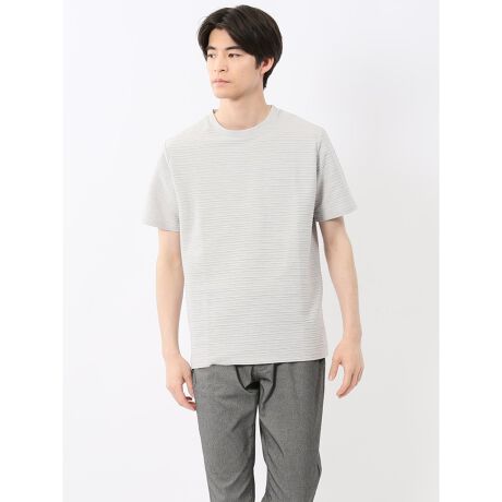シンプルで着回しやすいクルーネックの半袖Tシャツです。無地とはー線を画する編み地柄がポイント。一枚で着るのはもちろん、ジャケットやシャツ、ベストのインナーとしても便利なアイテムです。