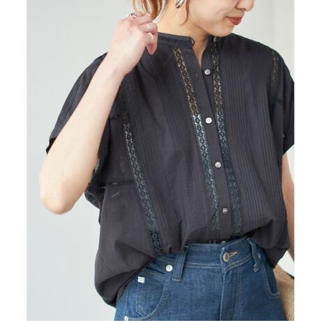 表情豊かなレース素材を掛け合わせた華やかなフレンチブラウス。