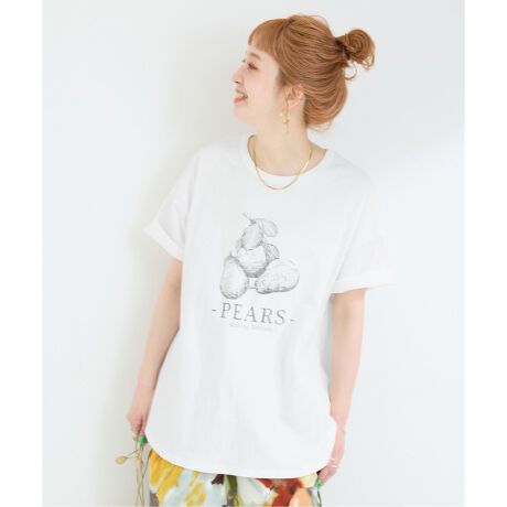 遊び心のあるフルーツモチーフがポイントのTシャツ。